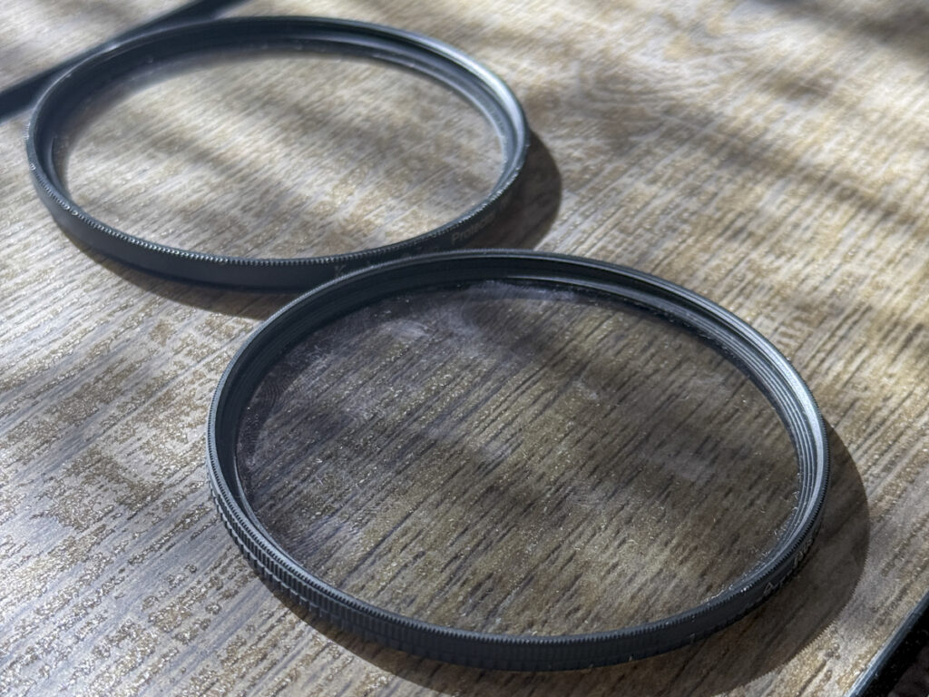 私の場合はプロテクターレンズをつけたレンズの上にPLフィルターを重ねてはめてしまったことが事の発端。レンズ本体からは外れたものの二枚のフィルターががっちりはまってしまい取れなくなってしまいました。